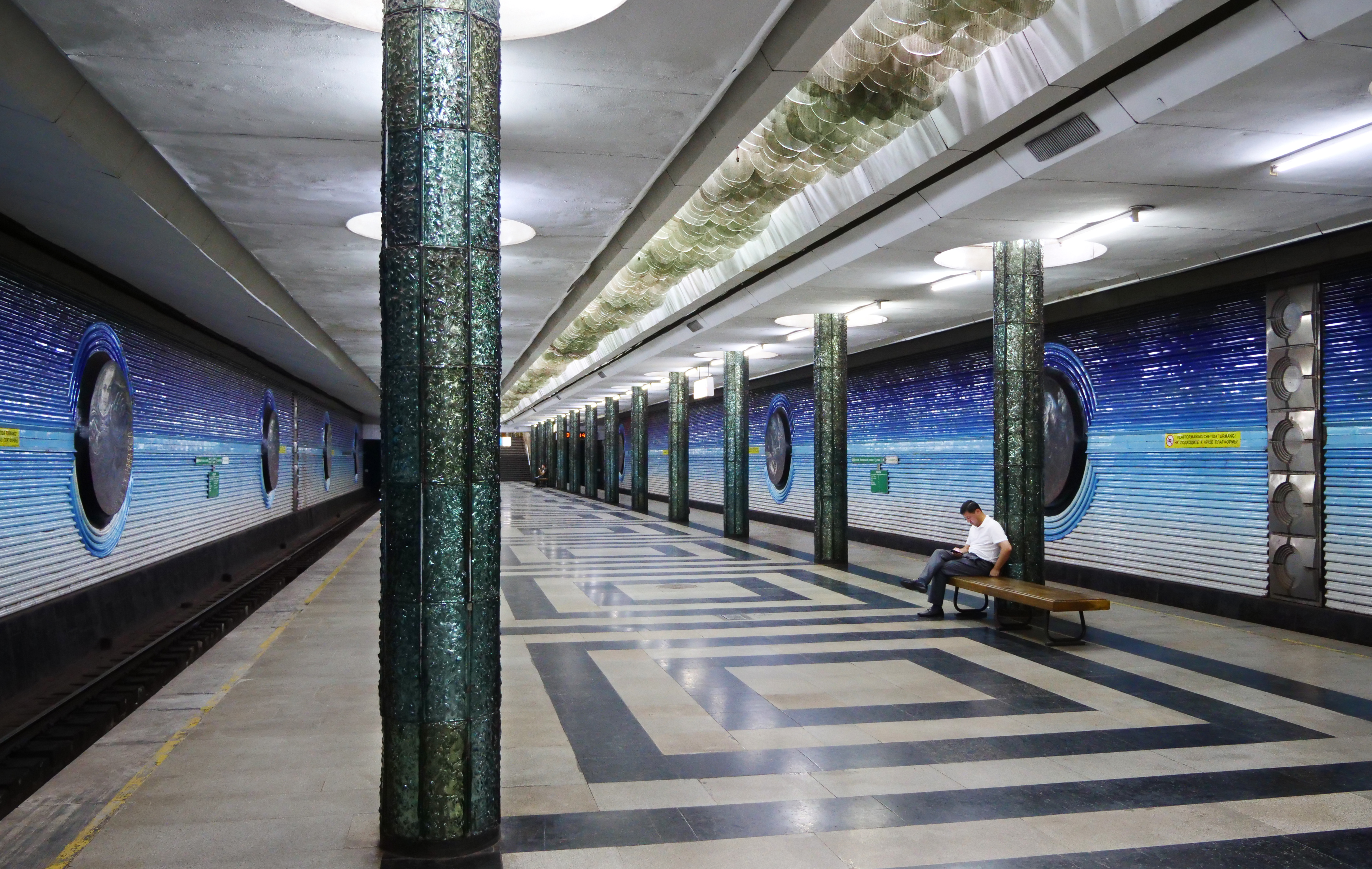 Gafur Qulom station, named after an Uzbek intellectual. During the Soviet period, planners required a city’s population to top 1 million before work would begin on a subway. Tashkent’s population reached the milestone in the early 1960s.