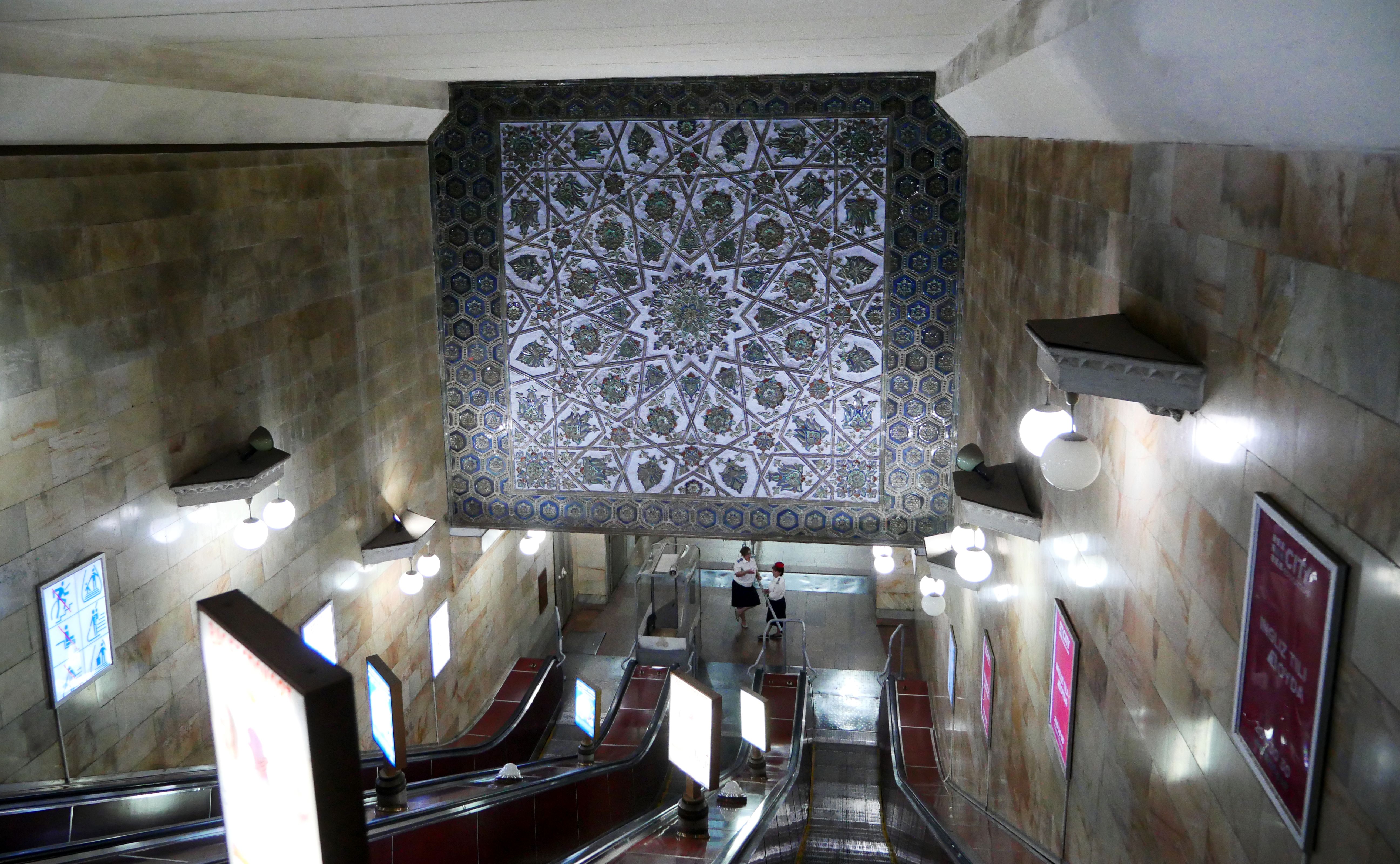 Many of the Metro stations were “decommunized” and had their names changed after the breakup of the U.S.S.R. in 1991. Amir Temur Khiyoboni (Amir Temur Square) station (pictured) is the former October Revolution station.