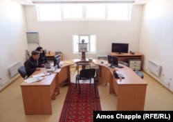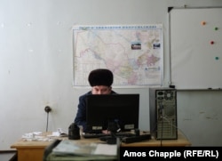 A researcher analyzing material samples. Around 160 people still work at the site, down from around 1,500 during the Soviet period.