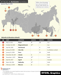 The region's commissioner for children’s rights, Irina Volynets, was quoted by the state TASS news agency as saying on May 12 that the motive for the attack is still not known.