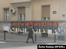 One building in Belgrade was slathered with red, blue, and white stripes and the words "Srpska Sparta," a label frequently given to Montenegro by Serbian nationalists who oppose Podgorica's referendum and 2006 declaration of sovereignty.