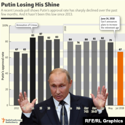 A July poll conducted by Levada put Putin's approval rating at 67 percent, the lowest in 4 ½ years.