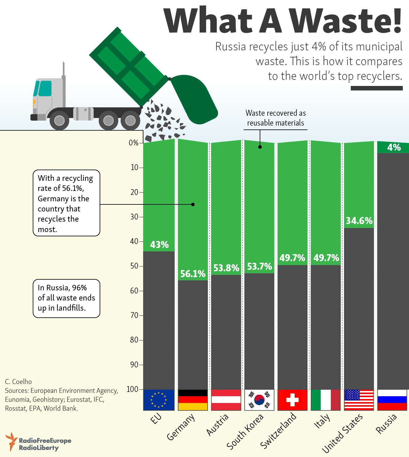 Russia recycles just 4% of its municipal waste. This is how it compares to the world’s top recyclers.