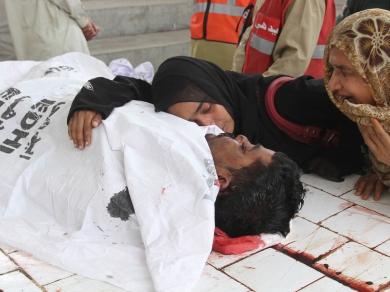 Family members mourn next to the body of a man killed in a target killing in Karachi. In the first six months of this year, 490 people have been victims of targeted killings in the city.