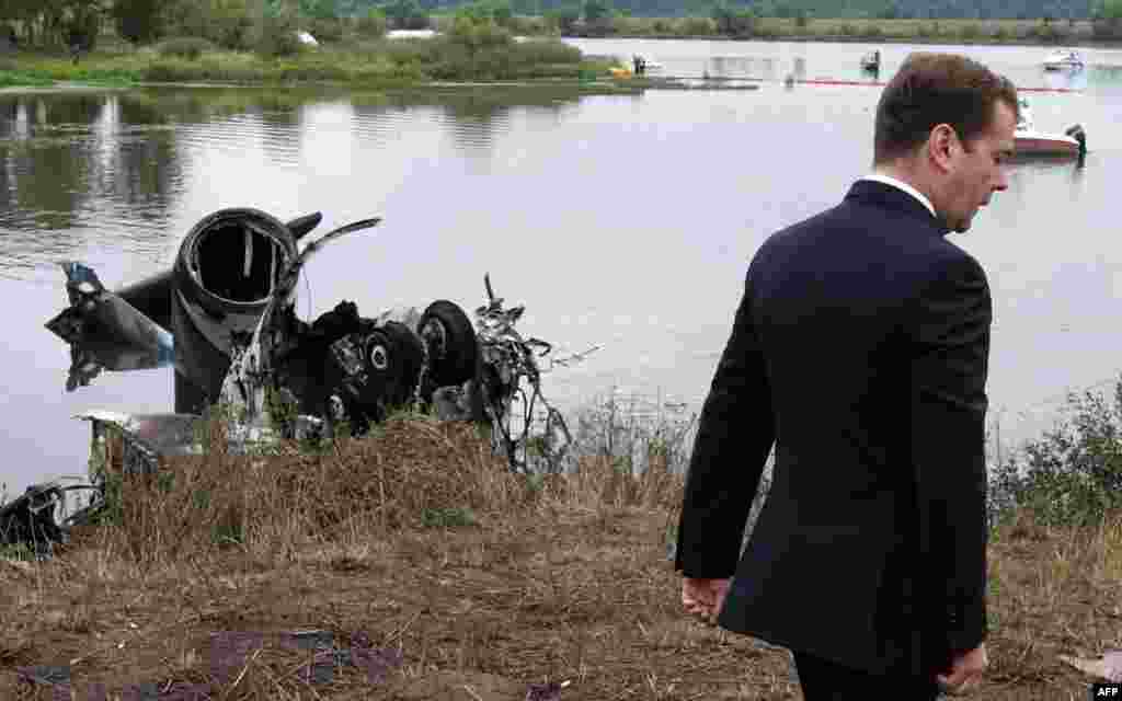 Then-Russian President Dmitry Medvedev made a personal visit to the crash site.