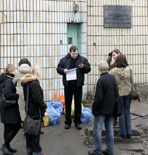 Relatives of prisoners waiting to hand over parcels of food and supplies at Akrestsina Prison near Minsk (RFE/RL file photo)
