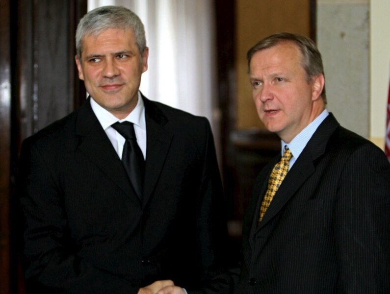 Serbian President Boris Tadic (left) with EU enlargement commissioner Otto Rehn in Belgrade in May (epa)