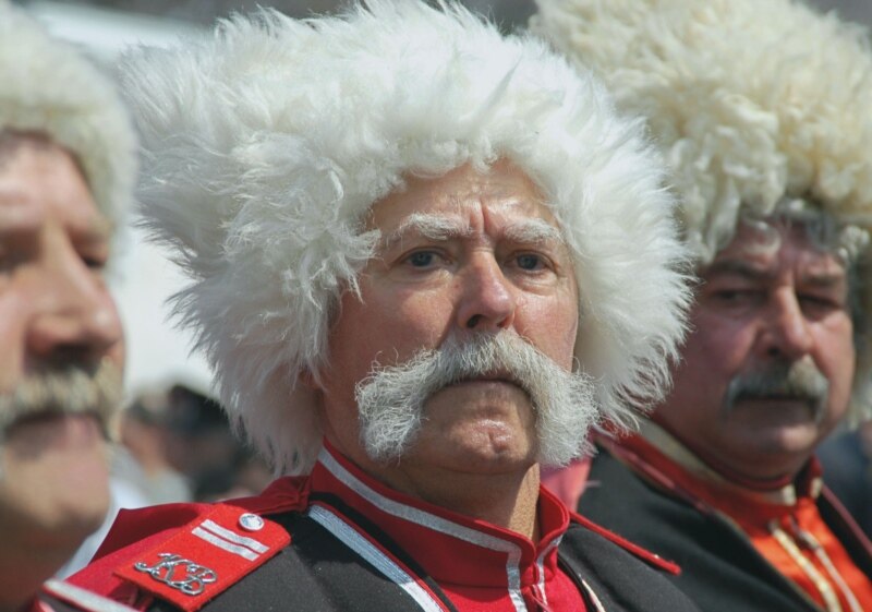 Cossacks attending the unveiling of a monument to their tsarist-era predecessors in the Kuban region of Krasnodar Krai in April (TASS)