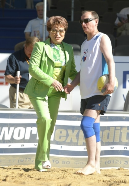 St. Petersburg native and Governor Valentina Matviyenko playing volley ball with Federal Security Service Director Nikolai Patrushev, a fellow St. Petersburg native (TASS file photo)