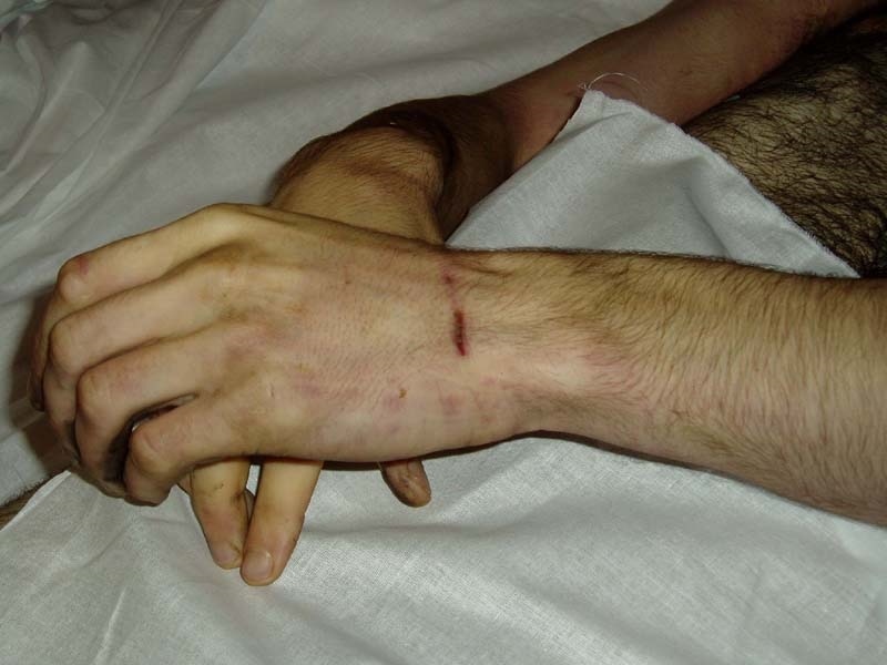 One of them asked if we knew that one of "ours" had been beaten up recently. We did know that one day earlier, a young man was severely beaten and was in the hospital. He was hit in the head three times with a steel rod.