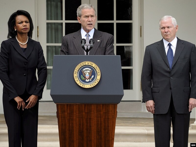"The United States of America stands with the democratically elected government of Georgia," Bush said. "We insist that the sovereignty and territorial integrity of Georgia be respected. Russia has stated that changing the government of Georgia is not its goal. The United States and the world expect Russia to honor that commitment."