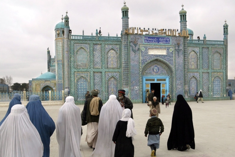 The shrine houses the tomb of Ali, the cousin and son-in-law of the Prophet Muhammad. People here believe his body was moved to Afghanistan from its original burial place in Al-Najaf, Iraq, sometime early in the history of Islam.