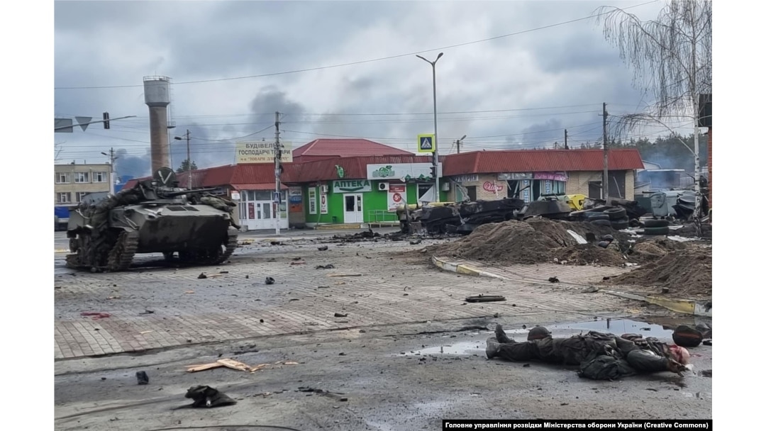 The aftermath of fierce fighting that took place on March 4 in Hostomel, northwest of Kyiv.