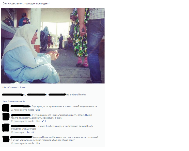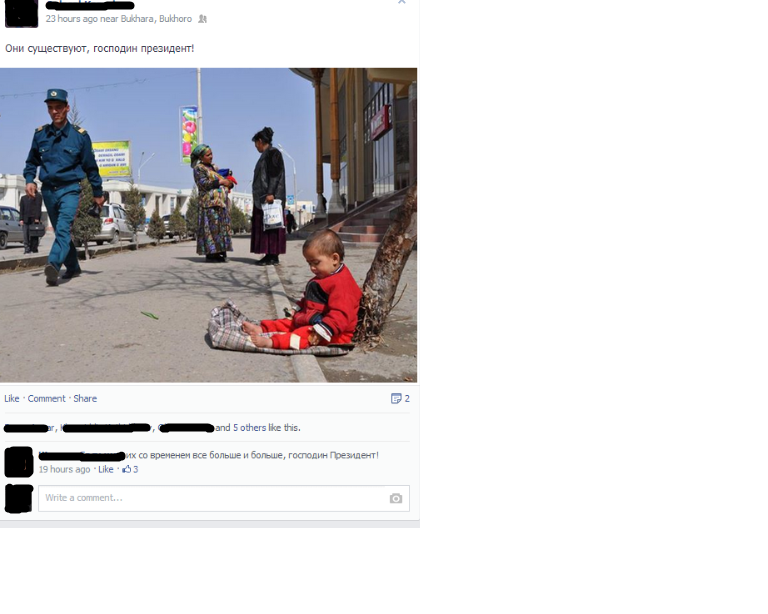 Karimov’s speech has also inspired some Uzbeks to refute the president’s comments by postingphotos of beggars on Facebook and Twitter.
