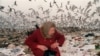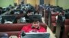 Alexandr Sprado works on a yurt's distinctive roof opening (RFE/RL)