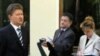 Gazprom CEO Aleksei Miller (left) speaks with journalists after meeting Russian President Vladimir Putin President Vladimir Putin appeared in a carefully staged, televised meeting with Prime Minister Mikhail Fradkov and Gazprom CEO Aleksei Miller at his residence outside of Moscow on 14 September. The president listened intently as Fradkov presented "his" idea for solving several problems at once, the most important of which he said was the problem of the dual stock system at the gas giant caused by the formal ban on foreign ownership of Gazprom stock. For years, foreign investors have complained that the ban is unfair and is hindering investment in Gazprom and in Russia generally, while the government has been unwilling to drop the ban because it does not have a majority stake in the strategically important company.