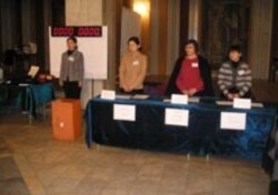 Election workers at Almaty polling station No. 312 just prior to the opening of voting at 7 a.m. on 4 December