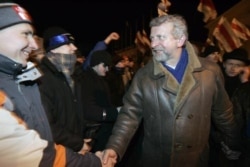 A few dozens supporters had remained on the square all day long, following a night of peaceful protest, listening to music and trying to stay warm amid biting cold.