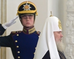 Patriarch Aleksy II entering the Kremlin in June to receive a state award (epa)
