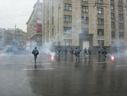 A group made their way to the city's monument to Prince Yury Dolgoruky, but found that area occupied by ultranationalists and police.