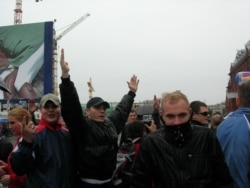 Nationalist youths shouted homophobic slogans such as "death to pederasts!" (RFE/RL)