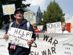 A Bush supporter demonstrates outside the Bush family compound in Kennebunkport Maine in August 2006 (AFP)