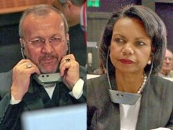 There had been hopes U.S. Secretary of State Condoleezza Rice (right) would meet Iranian Foreign Minister Manuchehr Mottaki in Sharm el-Sheikh (RFE/RL)