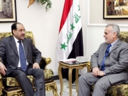 Prime Minister al-Maliki (left) speaking with Vice President al-Hashimi on May 10(epa)